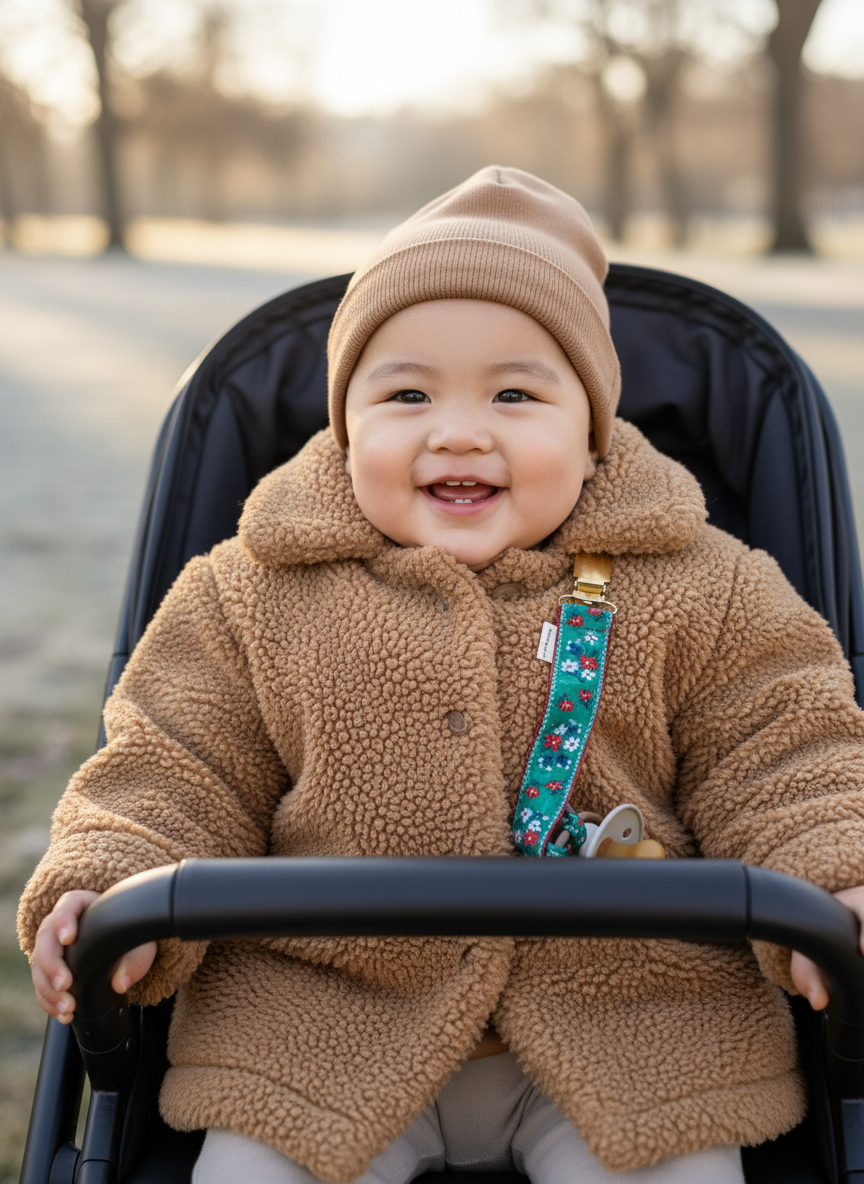 Note: all pacifier clips are made by hand. Because of this they may differ slightly from the pacifier clips shown in the photo.